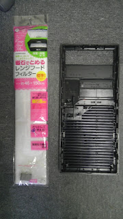 - 換気扇のフィルタをフロントパネルの形に切り出す。